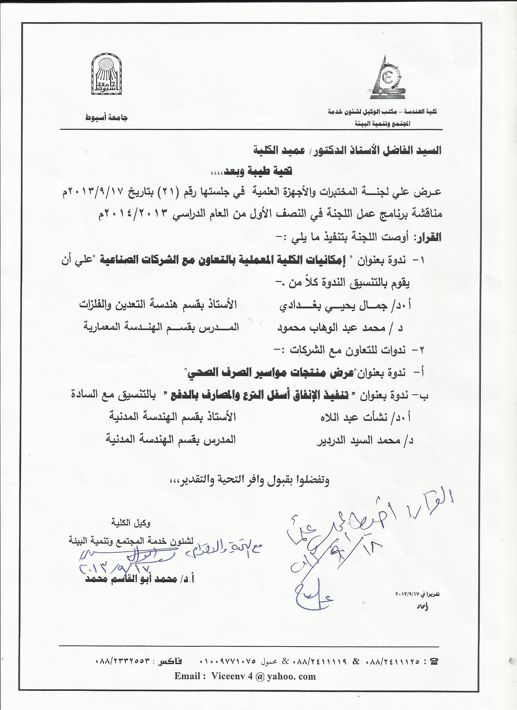 The laboratories and scientific devices committee discussed its programme in the first semester of the academic year 2013-2014. The recommendations are as follows: