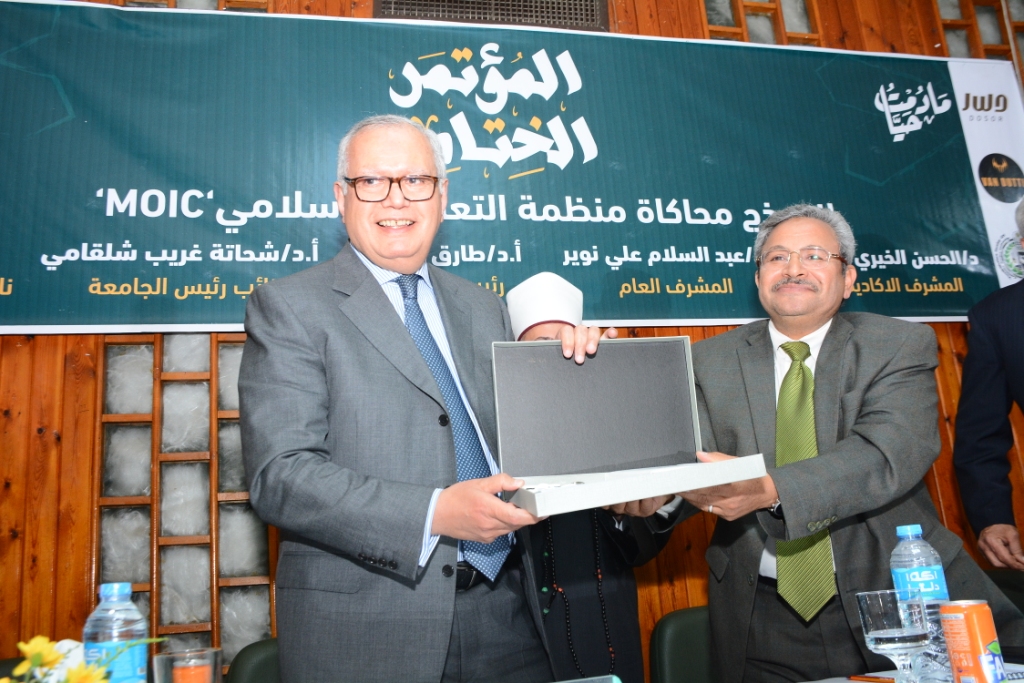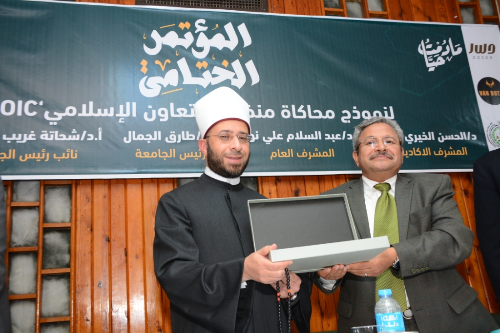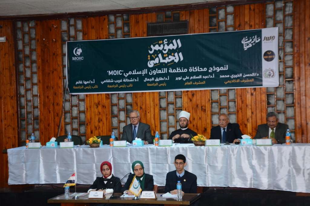 Assiut University witnessed the launch of the proceedings of the closing conference of the "MOIC simulation model" entitled "Facing Terrorism and Extremist Violence: Opportunities and Challenges", under the auspices of Dr. Tarek El-Gamal, President of Assiut University, and Dr. Shehata Ghareeb, Vice President for Education and Student Affairs. The conference witnessed the presence of Dr. Osama Al-Azhari, Advisor to the President of the Republic for Religious Affairs, Ambassador Mohamed Al-Orabi, the former Minister of Foreign Affairs of Egypt, Dr. Taya Abdel-Latif, Advisor to the Minister of Higher Education and Scientific Research for student activities, and Dr. Abdel Salam Noir, Dean of the Faculty of Commerce, Dr. Mohamed El-Adawy Vice Dean for Education and Student Affairs, Dr. Alaa Abdel Hafeez, Vice Dean for Community Service and Environmental Development, Dr. Abdel Rahim Khalil, Head of the Political Science Department, and Dr. El Hassan El Khairy, the academic supervisor of the model, in the presence of a group of department heads and faculty members and with the participation of students of the model.