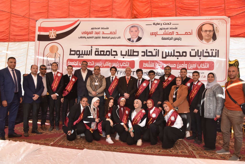 This came in response to the report submitted by Dr. Ahmed Abdel-Mawla, Acting Vice President for Education and Student Affairs, on the final result of the elections of the Assiut National University Student Union, which resulted in the selection of the president of the National University Student Union, the student Seif El-Din Sherif Mohamed “Faculty of Engineering”, and his deputy Ahmed Sameh Eid "Faculty of Medicine". Also, the President and Vice President of the Student Union of each of the seven faculties of the university were chosen, and they are, respectively, Ahmed Mahmoud Abdel Wadeed and Amr Khaled Hussein in Dentistry, Abdullah Mamdouh Abdel Nabi and Ahmed Sameh Eid in Medicine, Alaa Muhammad Farghali And Rawan Ahmed Hassan, Faculty of Financial and Administrative Sciences, Ahmed Mohamed Abdel-Aal and Maryam Reda Hanafi, Computers and Information, Lamia Sayed Ahmed and Farah Ahmed Farouk, Faculty of Al-Alsun, Seif El-Din Sharif Mohamed and Mirona Samer Nazim, Engineering, Michel Medhat Hazmi and Iyad Sabry Abdel-Latif, Pharmacy.