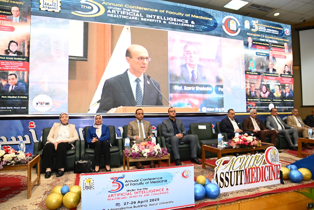 وفي كلمته الافتتاحية، رحب الدكتور أحمد المنشاوي باللواء هشام أبو النصر، مثمناً التعاون القائم بين الجامعة ومحافظة أسيوط في مختلف المجالات العلمية والصحية والتنموية، مشيراً إلى أهمية موضوع المؤتمر الذي يتناول الذكاء الاصطناعي ودوره المحوري في تطوير أساليب التشخيص والعلاج وتحسين جودة الخدمات الصحية المقدمة للمرضى.