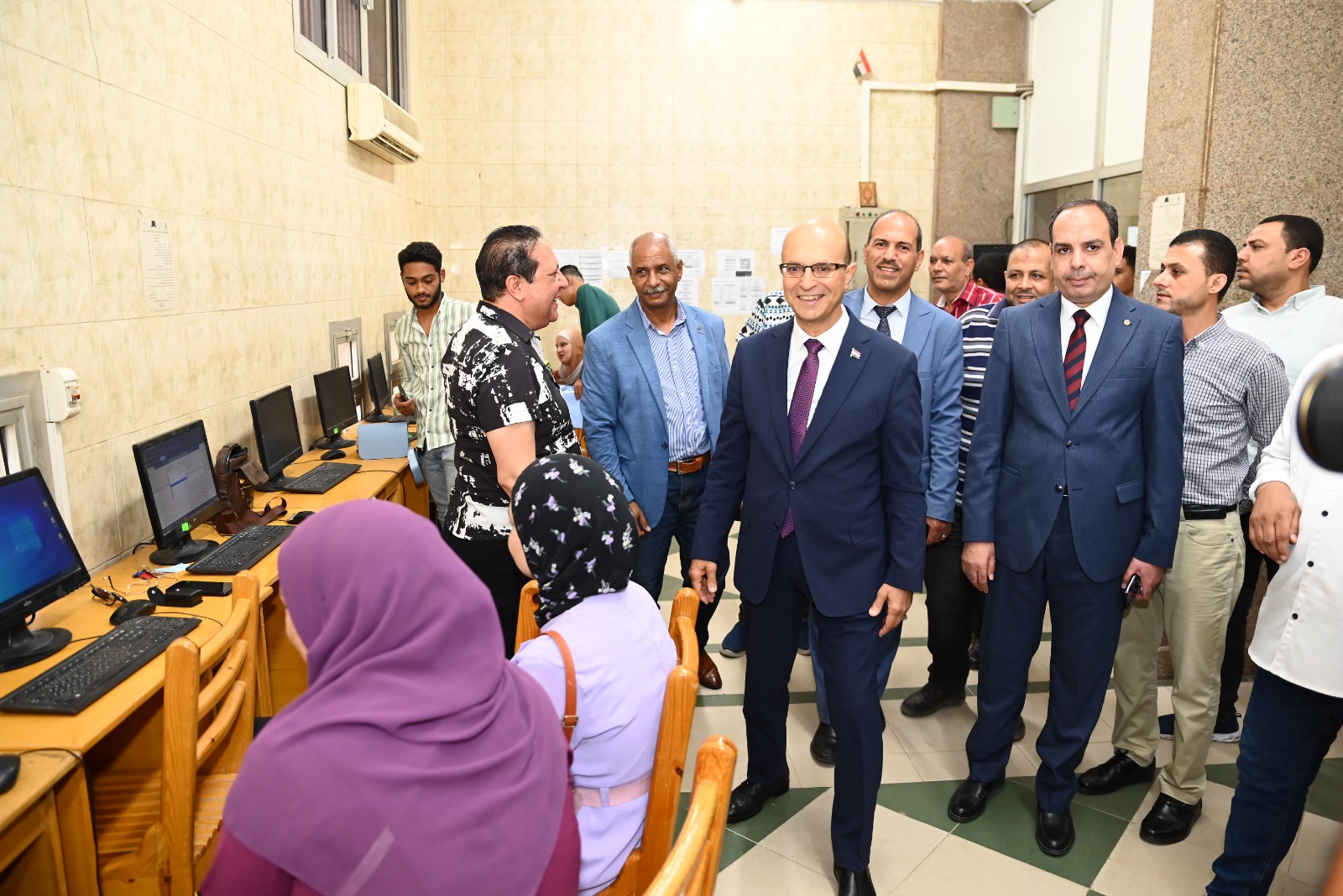 رافق رئيس الجامعة خلال الجولة كل من: الدكتور محمد أبو رحاب وكيل كلية الآداب لشئون التعليم والطلاب، والدكتور حامد مشهور وكيل الكلية لشئون خدمة المجتمع وتنمية البيئة، إلى جانب عدد من مسئولي معامل التنسيق الإلكتروني.