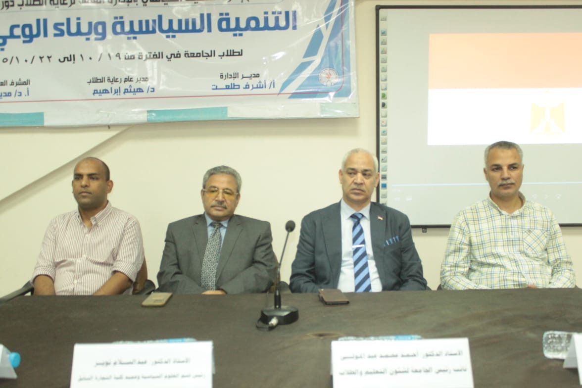 وفي تصريح له، أكد الدكتور أحمد المنشاوي، أن تنظيم هذا البرنامج يأتي في إطار جهود الجامعة لتنمية الوعي السياسي لدى طلابها، وبناء جيل من الشباب الواعي بقضايا وطنه، القادر على التفكير النقدي والمشاركة الإيجابية في الحياة العامة، موضحًا أن الوعي السياسي يمثل أحد الركائز الأساسية لبناء المواطن الصالح القادر على دعم مسيرة التنمية الشاملة، في ظل قيادة الرئيس عبدالفتاح السيسي.