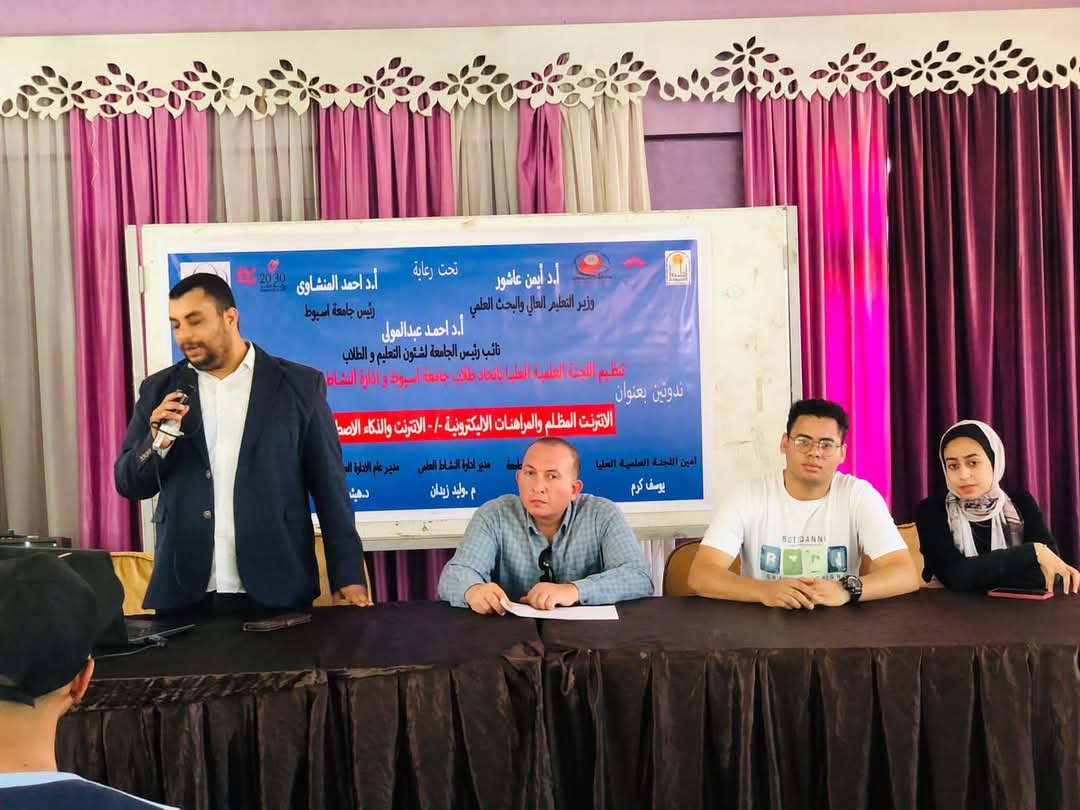 تحت رعاية الدكتور أحمد المنشاوي، رئيس جامعة أسيوط، نظمت الجامعة ندوتين تثقيفيتين بعنوان "الإنترنت والذكاء الاصطناعي: مخاطره وفوائده" و"الإنترنت المظلم والمراهنات الإلكترونية"، وذلك تحت إشراف الدكتور أحمد عبد المولى، نائب رئيس الجامعة لشئون التعليم والطلاب، والدكتورة مديحة درويش، المنسق العام للأنشطة الطلابية بالجامعة، والدكتور هيثم إبراهيم، مدير عام الإدارة العامة لرعاية الطلاب، وذلك بقاعة حمام السباحة في القرية الأوليمبية.