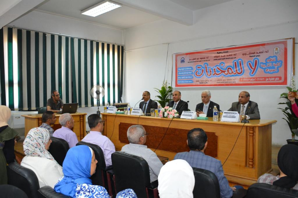 وفى كلمته أشاد الدكتور محمود عبد العليم، بهذا النشاط الهادف لكلية التربية، متمنياً للمشاركين التوفيق في توصيل رسالة النشاط للشباب، ومؤكداً أن التنمية المستدامة هي شعار المرحلة الحالية للجمهورية الجديدة، التي يجب أن يشارك الشباب في تحقيقها؛ ولذلك يجب أن يتخلوا جميعاً عن تجربة المخدرات، أو إدمانها؛ حتى يتمتعوا بكامل الوعي والإرادة؛ من أجل التعلم، والعمل، وأداء فرائض الدين.