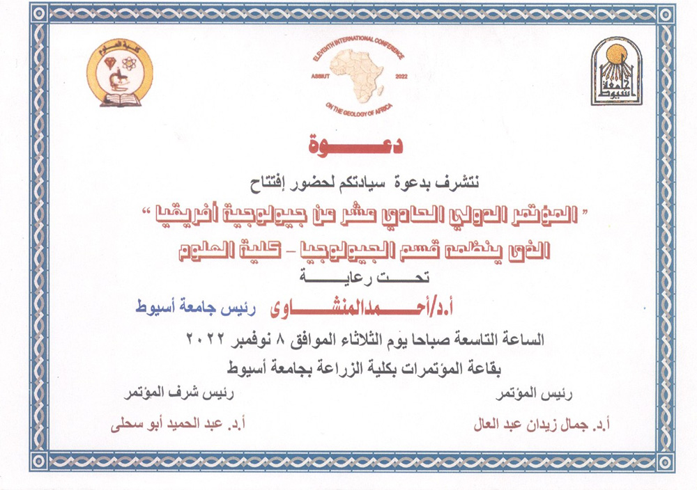 أعلن الدكتور أحمد المنشاوى القائم بعمل رئيس جامعة اسيوط عن إنطلاق غداً الثلاثاء 8 نوفمبر أعمال المؤتمر الدولى الحادى عشر عن جيولوجيا افريقيا والذى ينظمه قسم الجيولوجيا بكلية العلوم , وهو ما يأتي متوافقاً مع استراتيجية الجامعة في الحرص علي تطوير منظومة البحث الجامعي والارتقاء بالمستوي البحثى والأكاديمي وتبادل الخبرات علي نحو دولى واسع .
