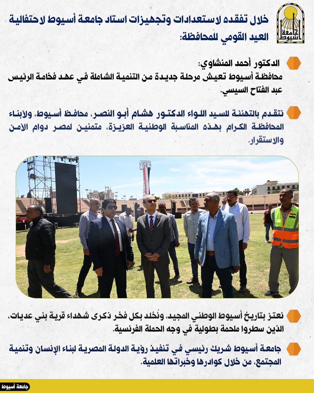 ♦️نتقدّم بالتهنئة للسيد اللواء الدكتور هشام أبو النصر، محافظ أسيوط، ولأبناء المحافظة الكرام بهذه المناسبة الوطنية العزيزة، متمنين لمصر دوام الأمن والاستقرار.