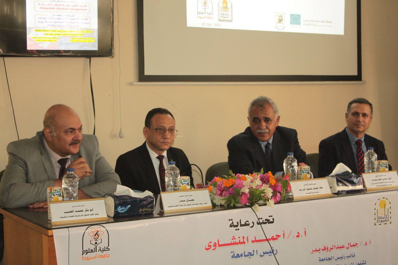 نظم قسم الكيمياء بكلية العلوم بجامعة أسيوط، تحت رعاية الدكتور أحمد المنشاوي رئيس الجامعة، ورشة عمل بعنوان "الإدارة الكيميائية المتكاملة Integrated Chemical Management"، وذلك بإشراف الدكتور جمال بدر نائب رئيس الجامعة لشئون الدراسات العليا والبحوث، والدكتور محمد أبو العيون عميد الكلية، والدكتور أبوبكر محمد الطيب وكيل الكلية لشئون الدراسات العليا والبحوث، والدكتور بهاء أبوزيد رئيس قسم الكيمياء.