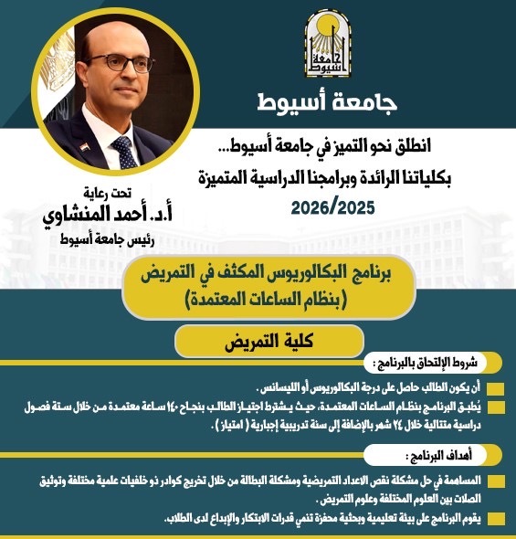 كلية التمريض بجامعة أسيوط تطرح برنامج "البكالوريوس المكثف في التمريض" بنظام الساعات المعتمدة للعام الجامعي 2025/2026