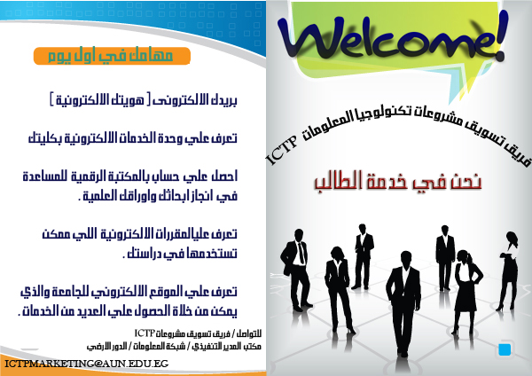 ايمانا باهمية استخدام خدمات تكنولوجيا المعلومات وحرصا من ادارة الجامعة لتحقيق افصي استفادة ممكنة منها يقوم فريق تسويق خدمات مشروعات تطوير نظم تكنولوجيا المعلومات والاتصالات الجامعة بعرض لاهم الخدمات التي يمكن الاستفادة منها للطلاب وللسادة اعضاء هيئة التدريس والموظفين
