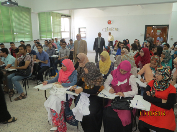 وفى كلمته للطلاب قدم السيد الأستاذ الدكتور عميد الكلية التهنئة للطلاب بالعام الجامعي الجديد متمنياً لهم عاما موفقاً بإذن الله ودعاهم إلى التطلع إلى مستقبل علمي أفضل من أجل بناء الوطن والحفاظ على كل مرفق حيوي داخل الكلية والمحافظة على المعامل وأماكن التدريس لأنها أمانة في أعناق الجميع وكما حثهم سيادته بالحفاظ على جمال والحرص على هذه المؤسسة العلمية العريقة كونها ربت وتربى أجيال علمية رصينة.