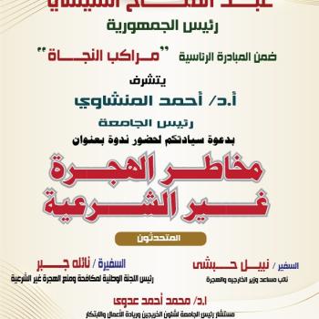 غداً .. الدكتور المنشاوي ونائب وزير الخارجية في ندوة "مخاطر الهجرة غير الشرعية" بجامعة أسيوط