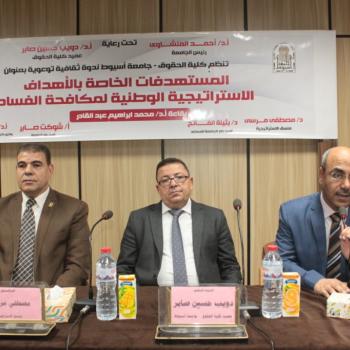 "المستهدفات الخاصة بالأهداف الاستراتيجية الوطنية لمكافحة الفساد" في ندوة تثقيفية بكلية الحقوق جامعة أسيوط