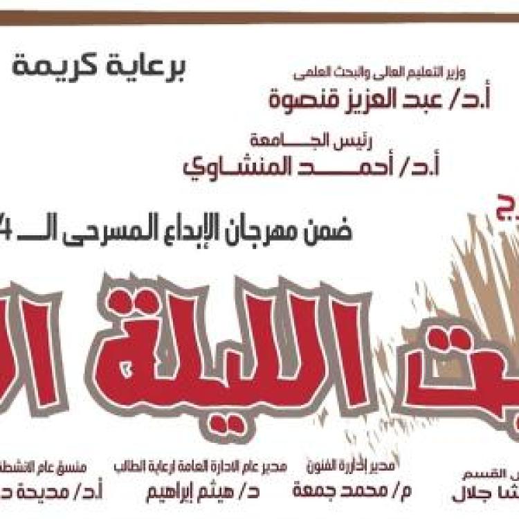 جامعة أسيوط تدعو طلابها لحضور العرض المسرحي “أوبريت الليلة الكبيرة” ضمن مهرجان الإبداع المسرحي ال14