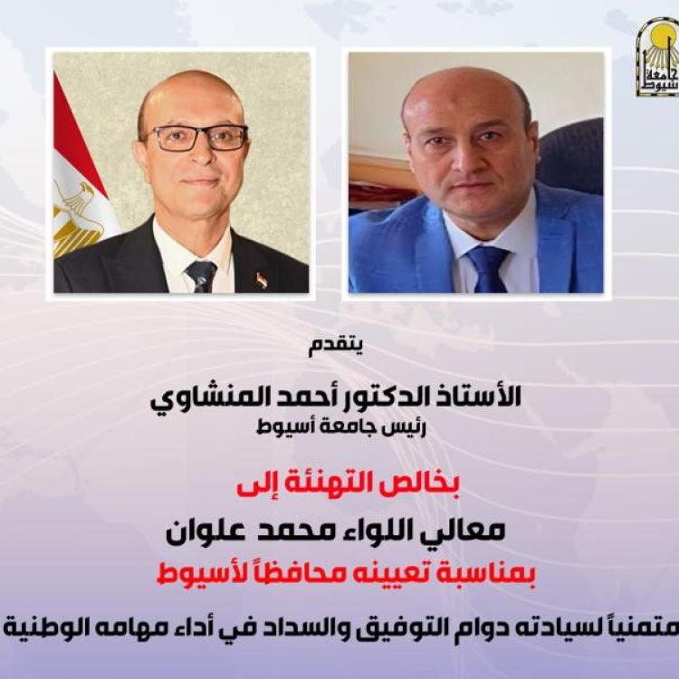 الدكتور المنشاوي يهنئ اللواء محمد علوان بمناسبة تعيينه محافظًا لأسيوط ويؤكد دعم جامعة أسيوط لجهود التنمية