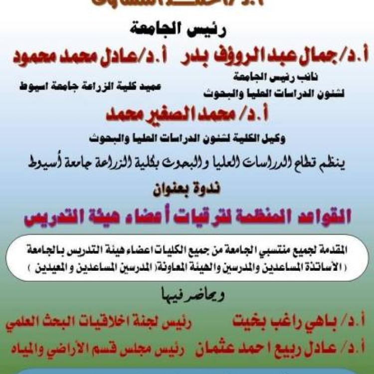 دعوة لحضور ورشة عمل بجامعة أسيوط حول«القواعد المنظمة لترقيات أعضاء هيئة التدريس»