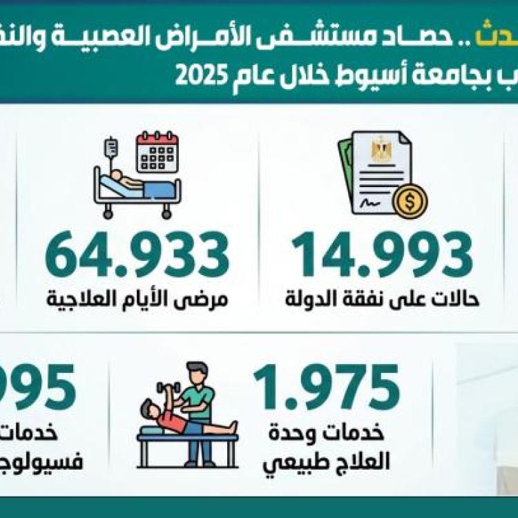 بالانفوجراف .. حصاد مستشفى الأمراض العصبية والنفسية وجراحة المخ والأعصاب بجامعة أسيوط خلال عام 2025