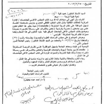 كتاب المكتب الثقافى المصرى بباريس متضمنا التسهيلات على نظام الدرجة المشتركة
