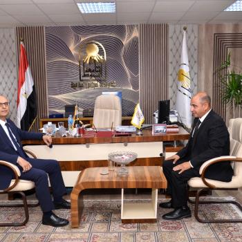 الدكتور المنشاوي رئيس جامعة أسيوط يقدم التهنئة للدكتور محمد عدوي .. ويؤكد علي دور قطاع خدمة المجتمع وتنمية البيئة كحلقة وصل بين الجامعة والمجتمع المحيط وتحقيق أهداف التنمية المستدامة