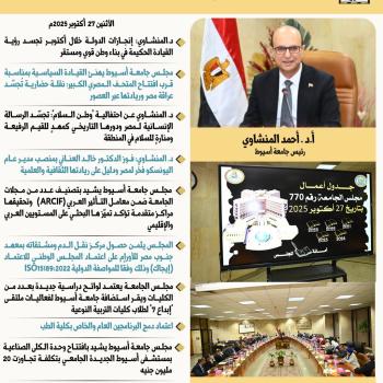 بالانفوجراف .. أبرز قرارات مجلس جامعة أسيوط في اجتماعه الدوري برئاسة الدكتور أحمد المنشاوي، المنعقد في ٢٧ أكتوبر ٢٠٢٥م.