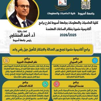 كلية الحاسبات والمعلومات بجامعة أسيوط تطرح برامج جديدة بنظام الساعات المعتمدة للعام الجامعي 2025/2026 لتأهيل كوادر رقمية قادرة على المنافسة