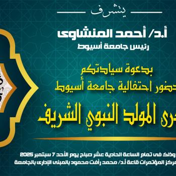 أعلن الدكتور أحمد المنشاوي، رئيس جامعة أسيوط، عن تنظيم الجامعة لاحتفالية كبرى بمناسبة ذكرى المولد النبوي الشريف، وذلك في تمام الساعة الحادية عشرة من صباح يوم الأحد…
