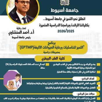 جامعة أسيوط تطرح برنامج "تناسليات ورعاية الحيوانات الأليفة (EPTMP)" لمرحلة البكالوريوس للعام الدراسي 2025/ 2026