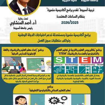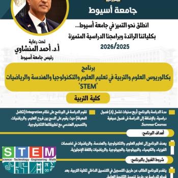 تربية أسيوط تطرح برنامج "بكالوريوس العلوم والتربية في تعليم العلوم والتكنولوجيا والهندسة والرياضيات STEM" للعام الجامعي 2025/2026