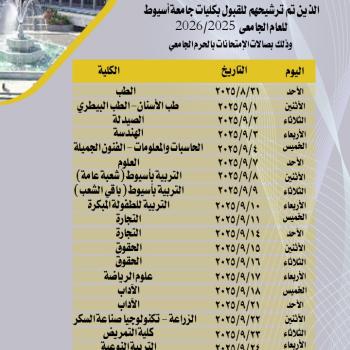 جدول مواعيد الكشف الطبي للطلاب الجدد (جامعة أسيوط 2025/2026).