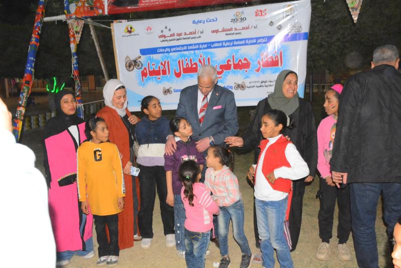 وفي هذا السياق، أكد الدكتور أحمد المنشاوي حرص الجامعة على أداء دورها الاجتماعي والإنساني إلى جانب رسالتها التعليمية والبحثية، من خلال تنظيم الفعاليات والأنشطة التي تستهدف الفئات الأولى بالرعاية، وفي مقدمتها الأطفال الأيتام. وأشار إلى أن مشاركة هؤلاء الأطفال في مثل هذه المناسبات، خاصة خلال شهر رمضان المبارك، تمثل رسالة إنسانية تسعى الجامعة إلى ترسيخها، بما يعزز قيم التكافل والتراحم داخل المجتمع، ويسهم في إدخال البهجة والسرور إلى قلوبهم.