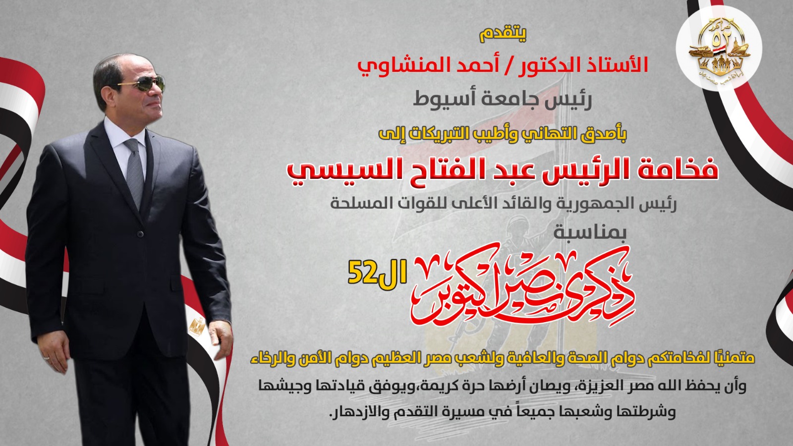 كما أكد أن انتصار أكتوبر سيظل رمزًا خالدًا في تاريخ مصر، وذكرى خالدة في وجدان كل مصري، وأن تضحيات الشهداء وبطولات الأبطال ستظل محفورة في ذاكرة الوطن لتلهم الأجيال القادمة لبذل المزيد من الجهد والعمل من أجل مستقبل مشرق يليق بتطلعات مصر الجديدة.