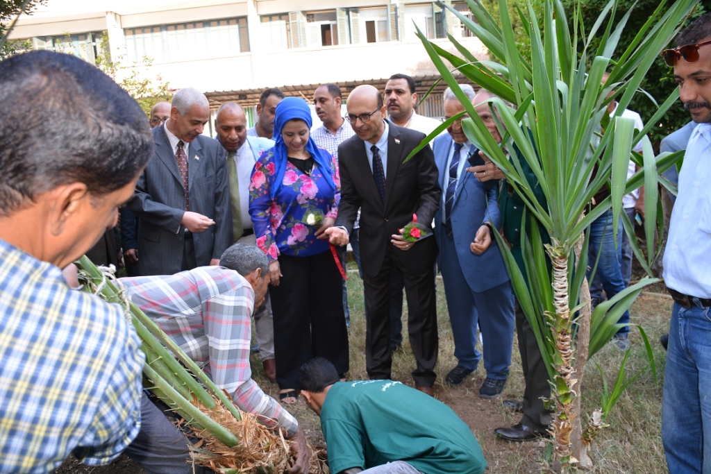 أكد الدكتور أحمد المنشاوي القائم بعمل رئيس جامعة أسيوط علي حرص إدارة الجامعة علي القيام بدورها المجتمعي والثقافى وذلك تنفيذاً لتوجيهات فخامة الرئيس عبد الفتاح السيسي رئيس الجمهورية بضرورة تفعيل المشاركة المجتمعية الهادفة الي مواجهة التغيرات المناخية والإحتباس الحراري وذلك من خلال زراعة الأشجار التي تتميز بجودة عائدها وإنتاجها المثمر , فضلاً عن زيادة المساحات الخضراء الجمالية داخل المناطق المختلفة بالجامعة , مؤكداً علي حرصه علي المشاركة في المبادرة لغرس الأشجار المثمرة وذلك لتشجيع أفراد المجتمع الجامعي علي الإهتمام بثقافة التشجير التي لها مردود بيئي وجمالي للمجتمع .