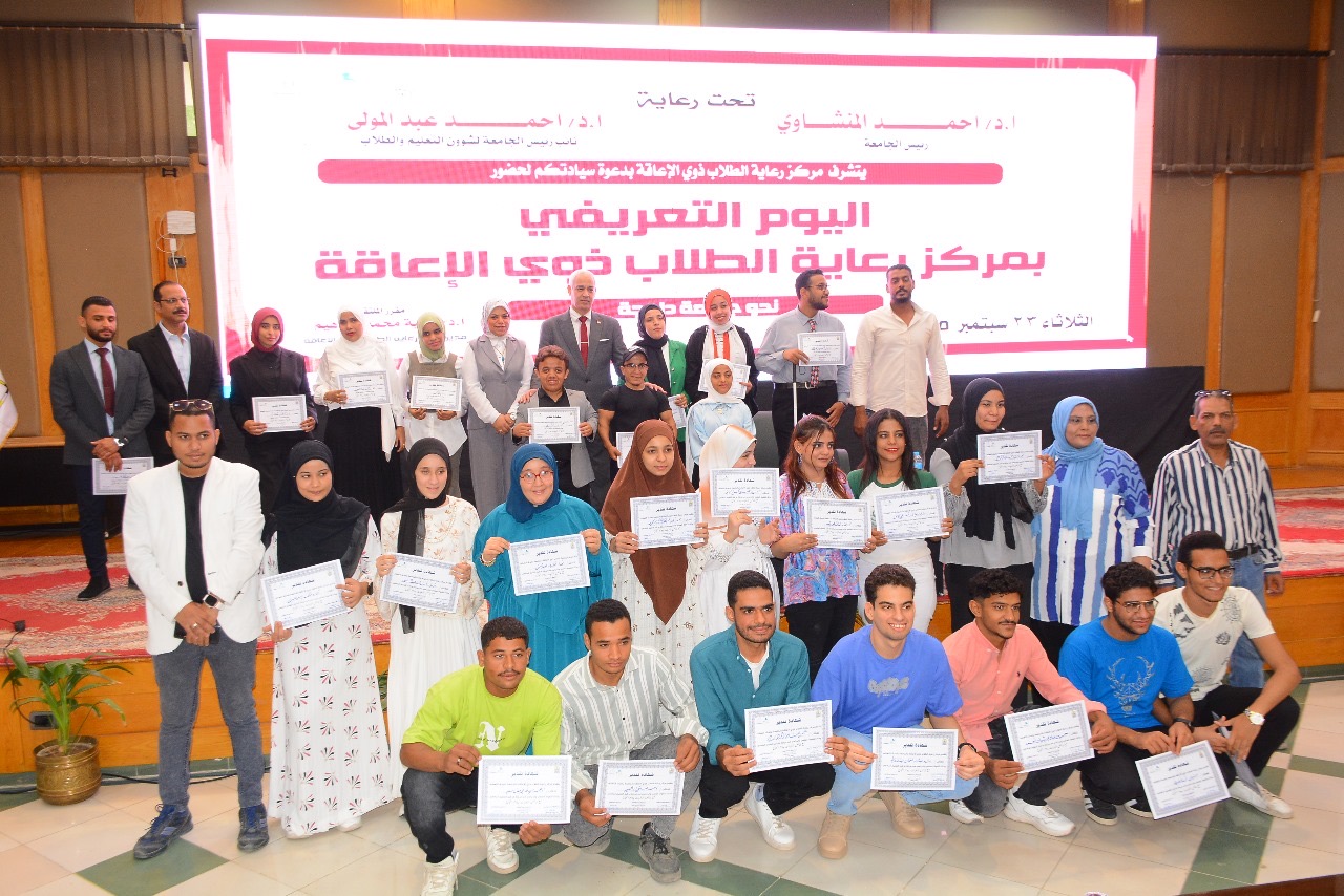جامعة أسيوط تنظم اليوم التعريفي بمركز رعاية الطلاب ذوي الإعاقة وتكرم أوائل الثانوية العامة والمتميزين من أبناء المركز