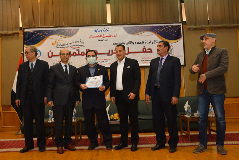 Dr. Tarek El-Gammal, President of Assiut University, confirmed that the university administration was keen to honor all competition applicants in the Assiut University Award for Quality and Governmental Excellence, who were not lucky to win. The administration also honored the cooperating departments that contributed to following up on the work of the award, in appreciation of their fruitful interaction with the efforts the university is witnessing for development in all areas. Such positive interaction contributed to the success of the university’s precedent in being the first Egyptian university to launch the internal award for the various units of the administrative apparatus affiliated with it. Moreover, the university's administrative body is famous for its speed of performance, efficiency of its elements, the breadth of its expertise, and practical solidarity between its various disciplines, a source of guidance for quality and excellence management. Finally, the president stressed the importance of holding more courses to introduce the award, its criteria, assessment bases, and how to nominate for its various fields, in order to expand the base of participants in the coming times.