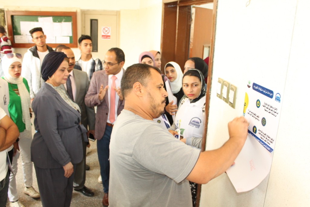 Dr. Maha Ghanem emphasized the keenness of the university administration to achieve the university’s mission seeking to direct its educational and community services in favor of serving the community and the environment, praising the efforts made by faculty members and students to raise environmental awareness within the faculty and deepen students’ belonging to the university community and the country, and she also urged students to participate in various environmental activities.