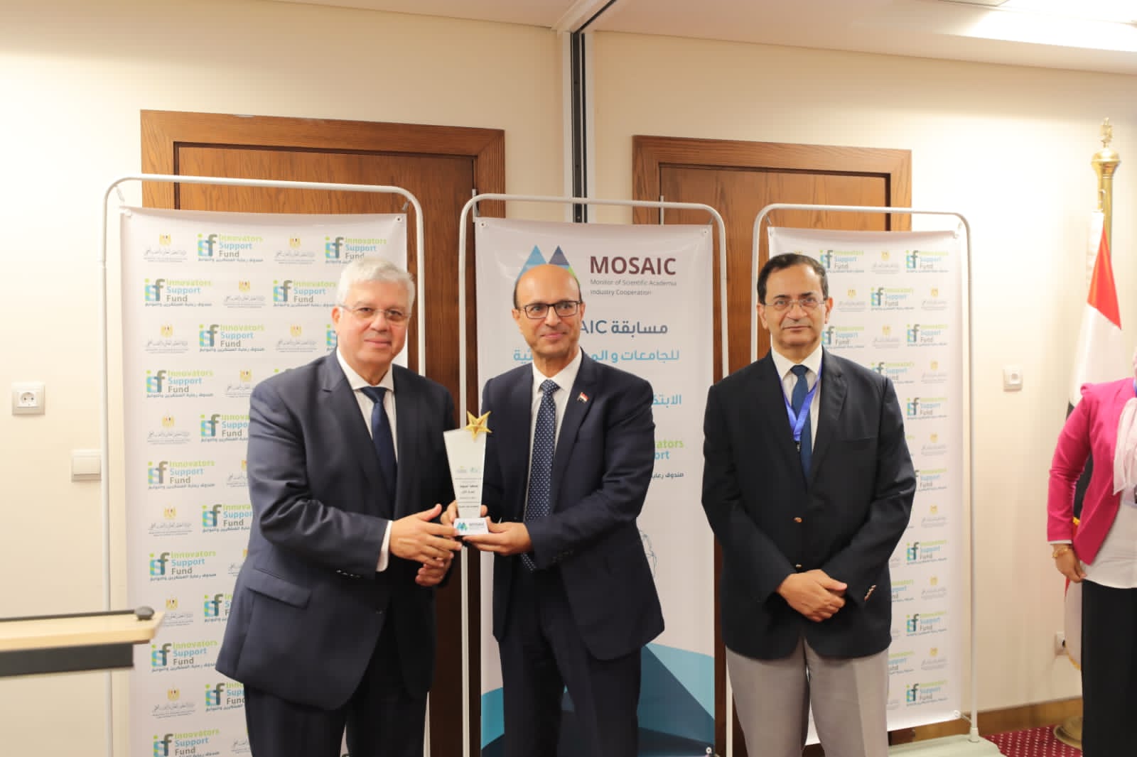 Dr. Diaa Khalil, Executive Director of the Innovators Support Fund, indicated that the MOSAIC competition comes within the framework of the Egyptian State’s orientations to support innovation and entrepreneurship in all educational institutions. He pointed out that the assessment tool of the MOSAIC competition was prepared based on standards similar to those of global innovation and knowledge indicators with the addition of some items that fit the needs and requirements of the evaluation within the educational and research institutions of the Arab Republic of Egypt. He stated that five main axes representing the inputs and outputs of innovation and cooperation with industry were reached.