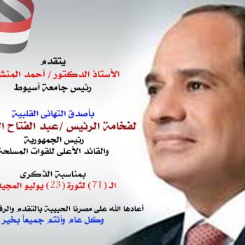 Prof. Ahmed El-Minshawy, President of Assiut University, congratulated His Excellency President Abdel Fattah El-Sisi, President of the Republic and the Supreme Commander of the Armed Forces, the…