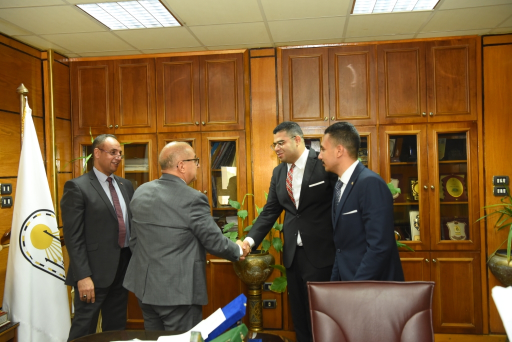 This came during his meeting with Mr. Mohamed Abdel Alim Ali Abdel Rahim, teaching assistant at the Department of Civil Law and Mr. Ahmed Assem Sultan, teaching assistant at the Law Department, and representatives of the group of teaching assistants who were appointed. The President of Assiut University congratulated the newly appointed teaching assistants, wishing them success.