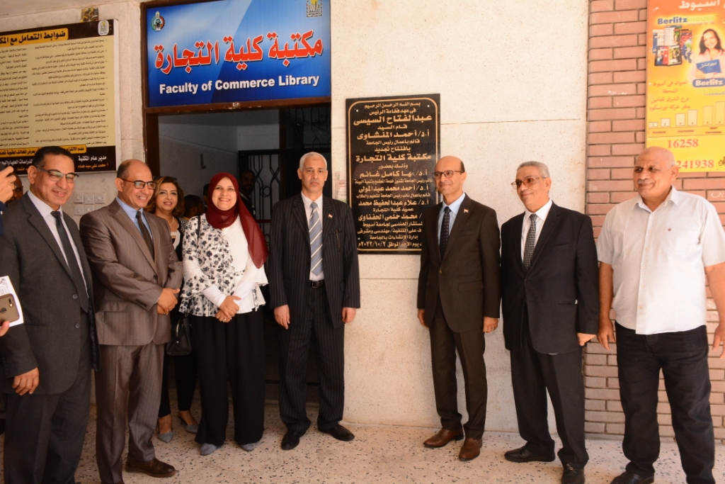 This came during the opening of the library of Faculty of Commerce after the completion of the replacement and renovation works, in the presence of Dr. Ahmed Abdel Moula, Acting Vice President for Education and Student Affairs; Dr. Alaa Abdel Hafeez, Dean of the Faculty of Commerce; Dr. Mohamed Helmy El-Hafnawy, Engineering Advisor of the University and Vice Deans of the College for its various sectors; faculty members; the college secretary and Professor Mohamed Ali Hammam, director of the library.