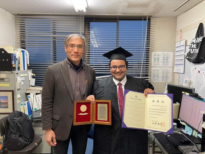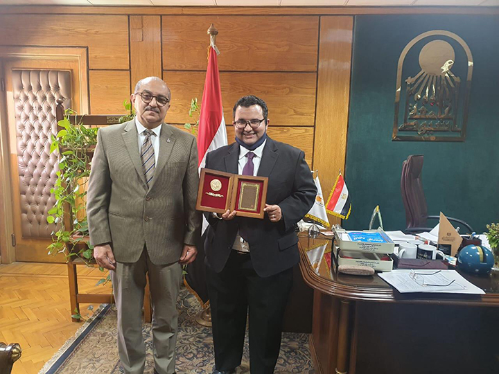 Dr. Tarek El-Gammal, President of Assiut University, congratulated Dr. Mohamed Abdel-Shakour, assistant lecturer at the Faculty of Science, for receiving Japan’s highest prize in chemistry from Tsukuba University, Japan, for his contribution in improving the efficiency and stability of solar energy cells by adding some chemicals to perovskite.
