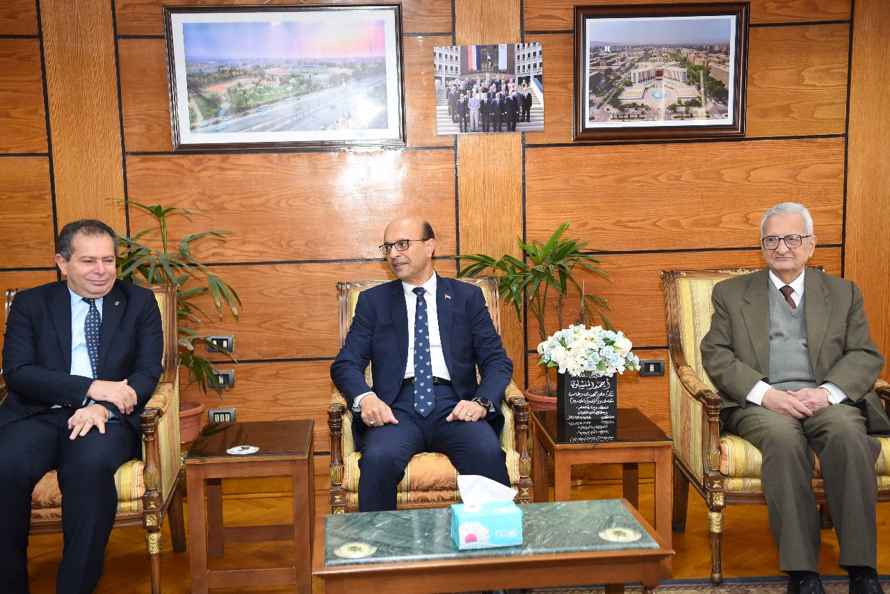 Prof. Ahmed El-Minshawy welcomed Dr. Ahmed wahban, the University's guest, appreciating his scientific and academic cooperation, which is a continuation of the various educational services provided by Assiut University to support and develop the skills of researchers and students, stressing the University's leadership and excellence in various scientific and research fields in Upper Egypt, as well as its familiarity with all international developments, to create a University climate supportive of excellence, scientific excellence, and work to link the gains of learning and scientific research, with the current and future needs of society.