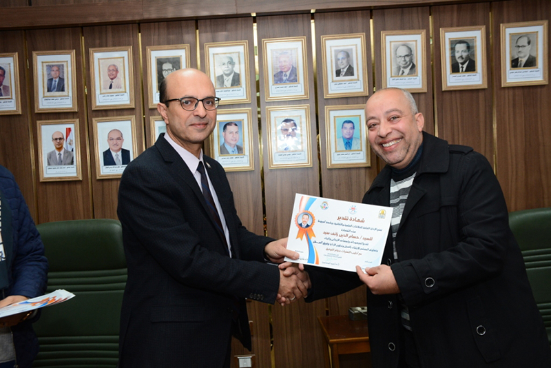 Dr. Ahmed El-Minshawi, Vice President of Assiut University for Graduate Studies and Research Affairs, stressed the university administration’s keenness to appreciate the efforts of its employees and support teamwork in various sectors in order to develop the university’s work and provide the best level of services to the university’s employees, under the auspices of Dr. Tarek El-Gamal, President of the University.