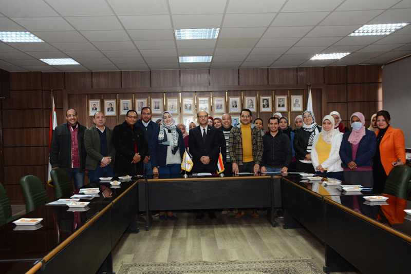 This came during Dr. El-Minshawi’s meeting with employees of the General Administration of Scientific and Cultural Relations, one of the departments of the Graduate Studies and Research Sector, to honor the members of the distinguished working group that recently applied for the Assiut University Award for Government Excellence in the category of the best working group. This came in appreciation of the tireless and sincere efforts they made to present their administration in an honorable way.