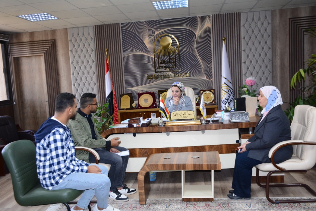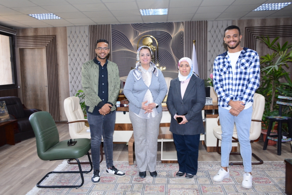 Under the auspices of Dr. Ahmed El-Minshawi, Acting President of Assiut University, Dr. Maha Ghanem, Vice President for Community Service and Environmental Development, received the volunteer students in ICT, Communication and Information Technology Support, participating in the Cop27 Climate Conference in Sharm El-Sheikh. The students were accompanied by Dr. Tayseer Hassan Suleiman, Dean of the Faculty of Computers and Information, and two students, Ahmed Hamada Sayed and Mohamed Walid Mohamed, enrolled in the third year, Faculty of Computers and Information, Software Engineering Program.
