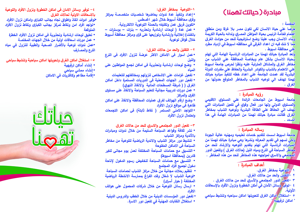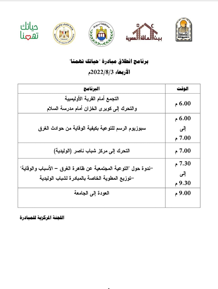 Prof. Shehata Gharib, Vice President of Assiut University for Education and Student Affairs, announced today his initiative of the activities of 'Your Life Concerns Us' to raise awareness against the risks of drowning accidents, in cooperation with the Ministry of Youth and Sports, Assiut Governorate and the Egyptian Family House.