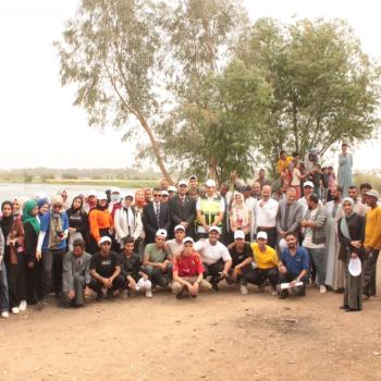 Assiut University students participate in a campaign to clean the Nile River in Bosra village