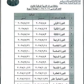 Assiut University announces the schedule of national education courses for female students for the academic year 2024/2025