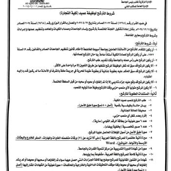Assiut University announces the opening of the candidacy for the position of Dean of the Faculty of Commerce and sets the schedule of procedures