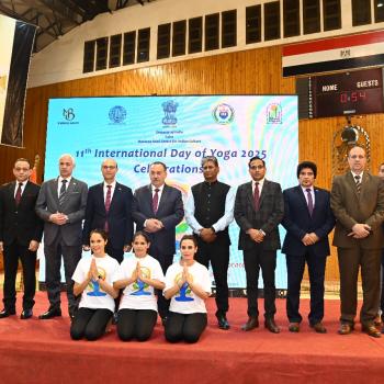Dr. El-Minshawy and Major General Dr. Hisham Abu Al-Nasr witness the launch of a workshop to celebrate the International Day of yoga with the participation of the Indian Ambassador