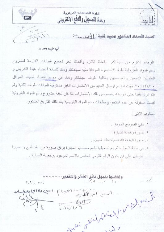 Online registration system unit sent an application for the member staff and the employees to obtain the smart card system for fuel purchases before the deadline 10-1-2014. The unit announces that some applications are not completed yet and the unit will not be responsible to send any card after the deadline.