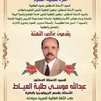 Congratulation to Prof. Abdalla Mousa Tolba Ibrahim